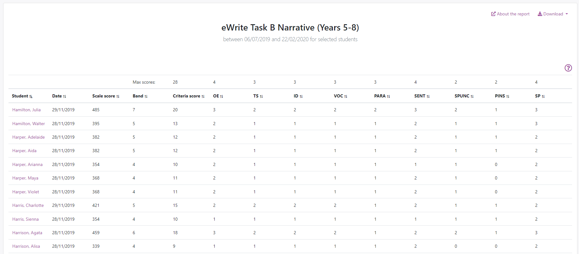 Teachers can choose from 4 different writing genres, and assign specific tasks to individual students and to groups of students. eWrite can be used to assess a whole year level, a class or a selected group of students.